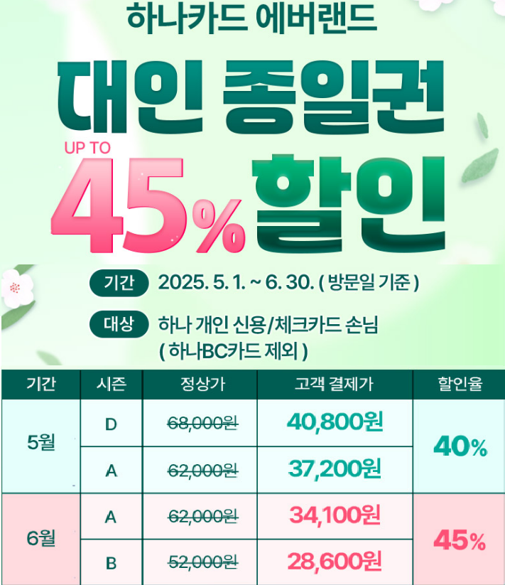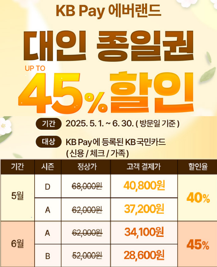 국민·하나 (신용/체크) | 45% 할인 (5~6월) |
