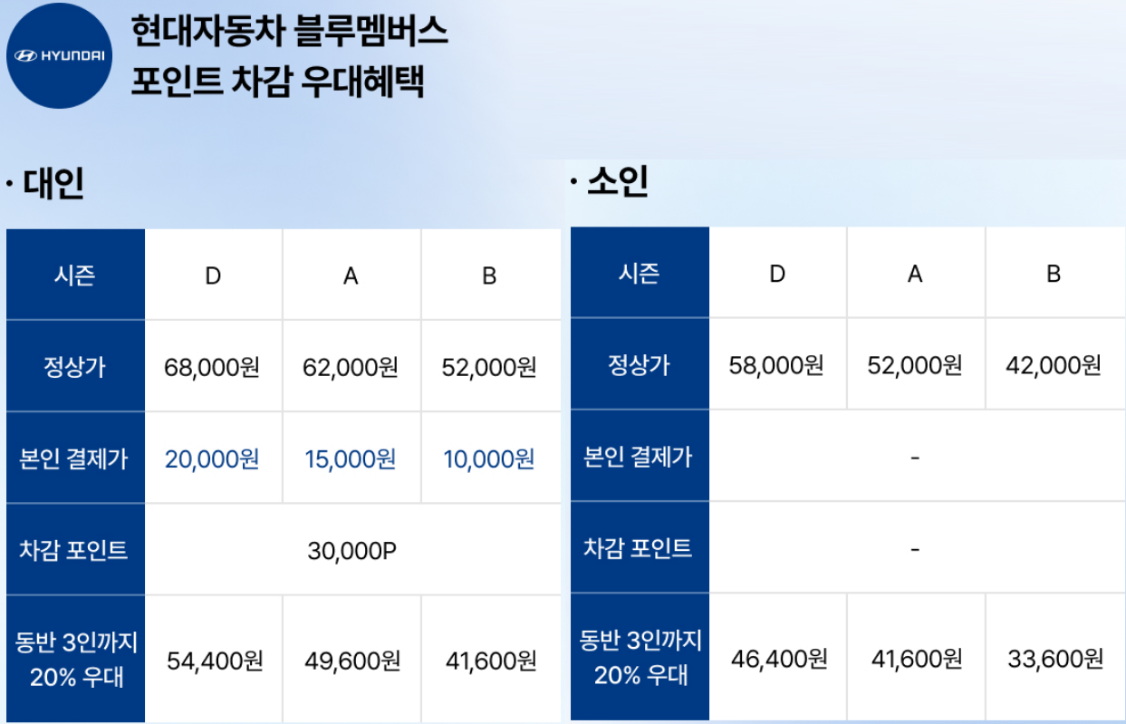 현대 M포인트, 현대 블루멤버스, 기아멤버스 | 포인트 차감 방식 할인 |