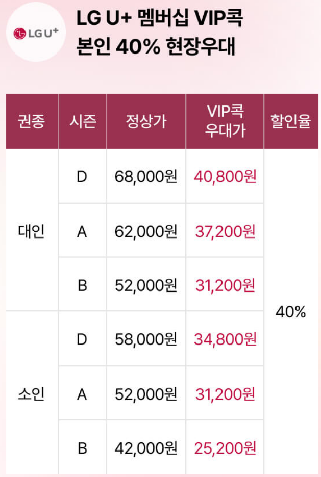 LG U+ 멤버십 (VIP) | 본인 40% 할인 |